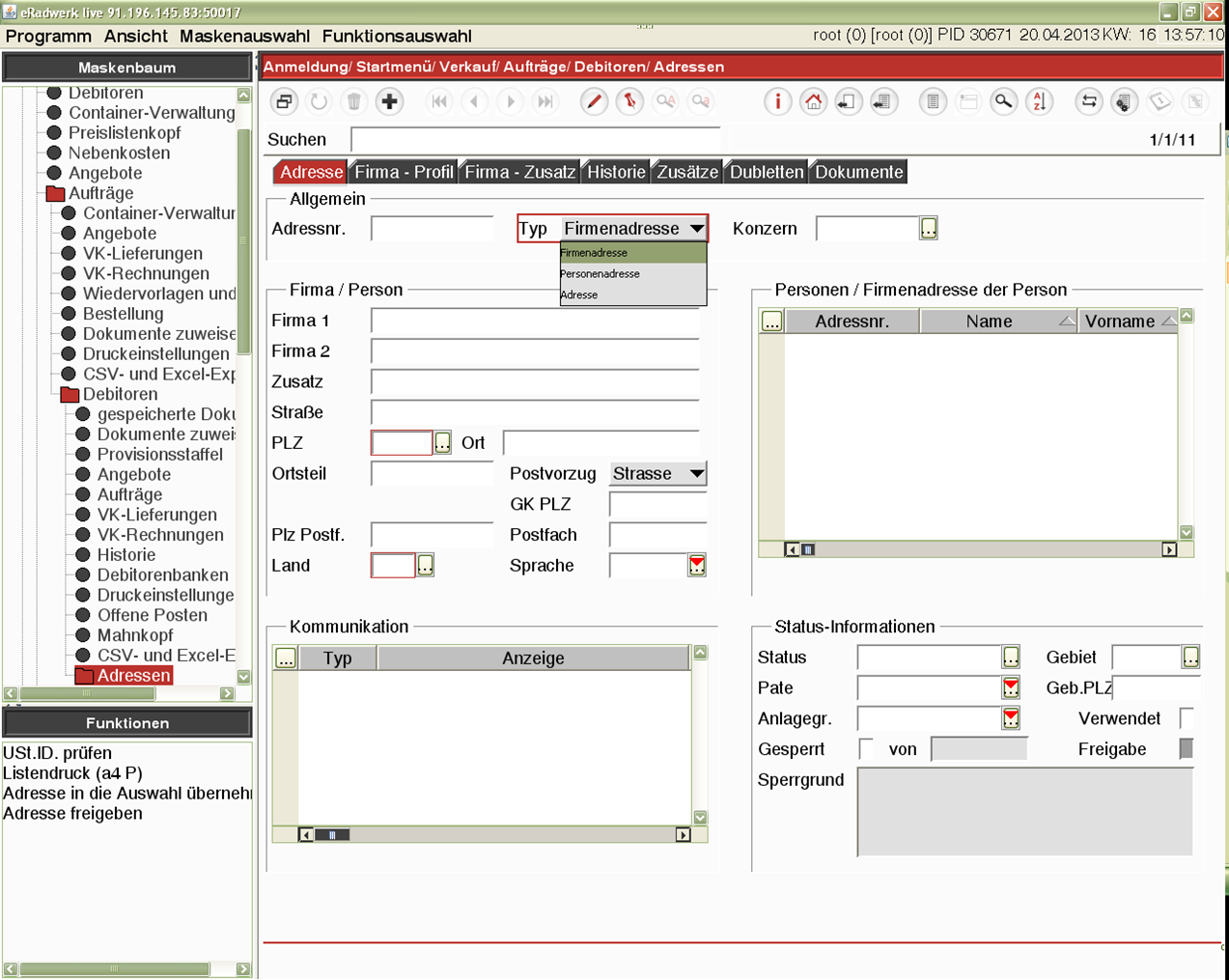 Schnellanlage Debitorenstammsatz mit neuer Adresse