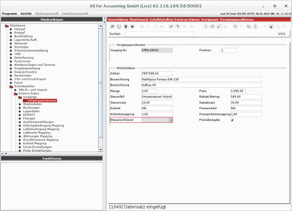 Die Artikelnummer kann nur dann als Auftragsposition angelegt werden, wenn die übergebene Nummer im Artikelstamm vorhanden ist. Unbekannte Artikelnummern müssen vor der Verarbeitung des Vorgangs angelegt werden.